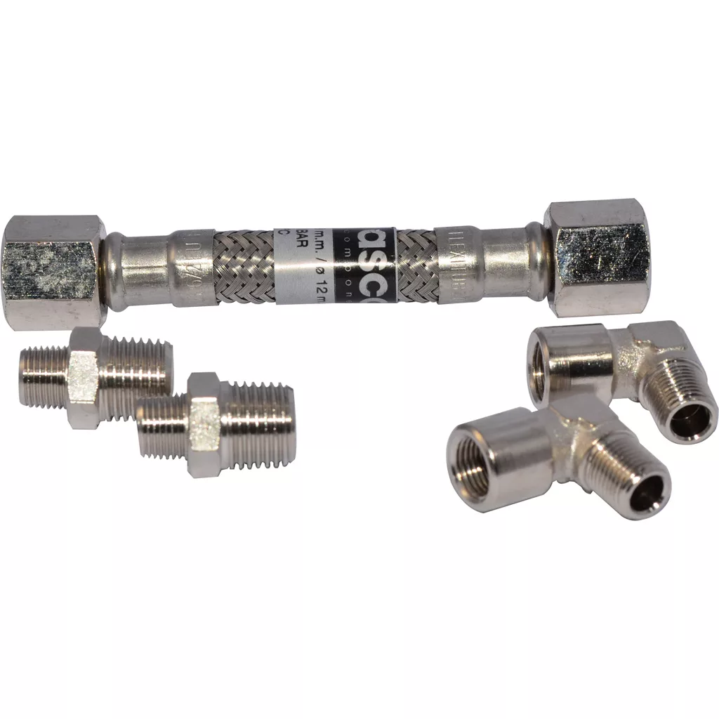 This kit is for the Ascaso Steel Duo espresso machine models with a manufacture date between 2006 and 2012. It replaces the existing plastic hose that runs from the pump air release valve to the boiler with a stainless steel hose.