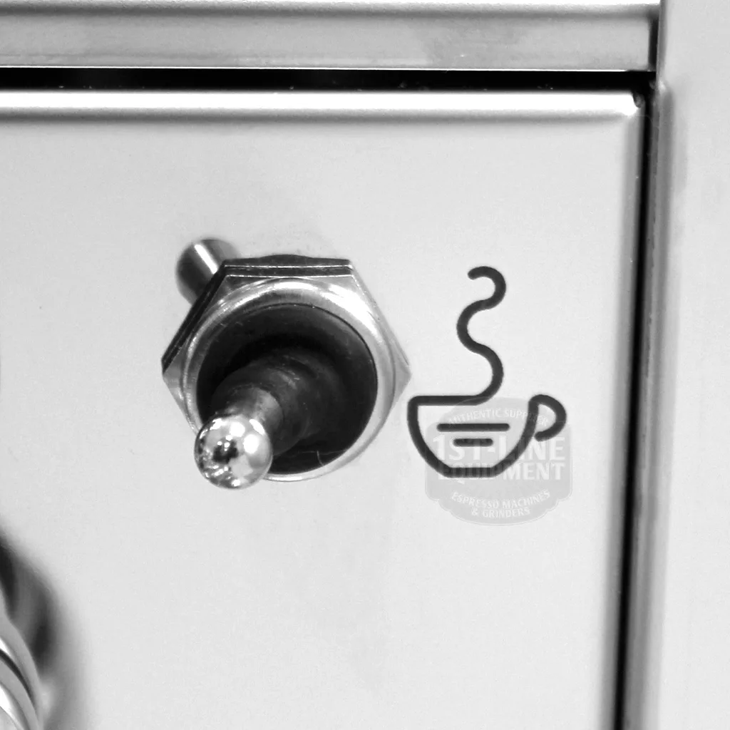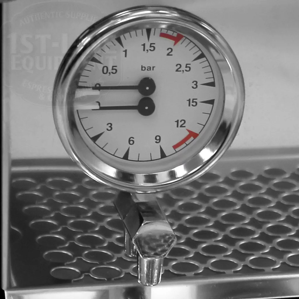 This machine is classified as a semi-automatic whereby the operator of the machine presses the coffee button to start the espresso extraction and depresses the same button to stop the espresso extraction.