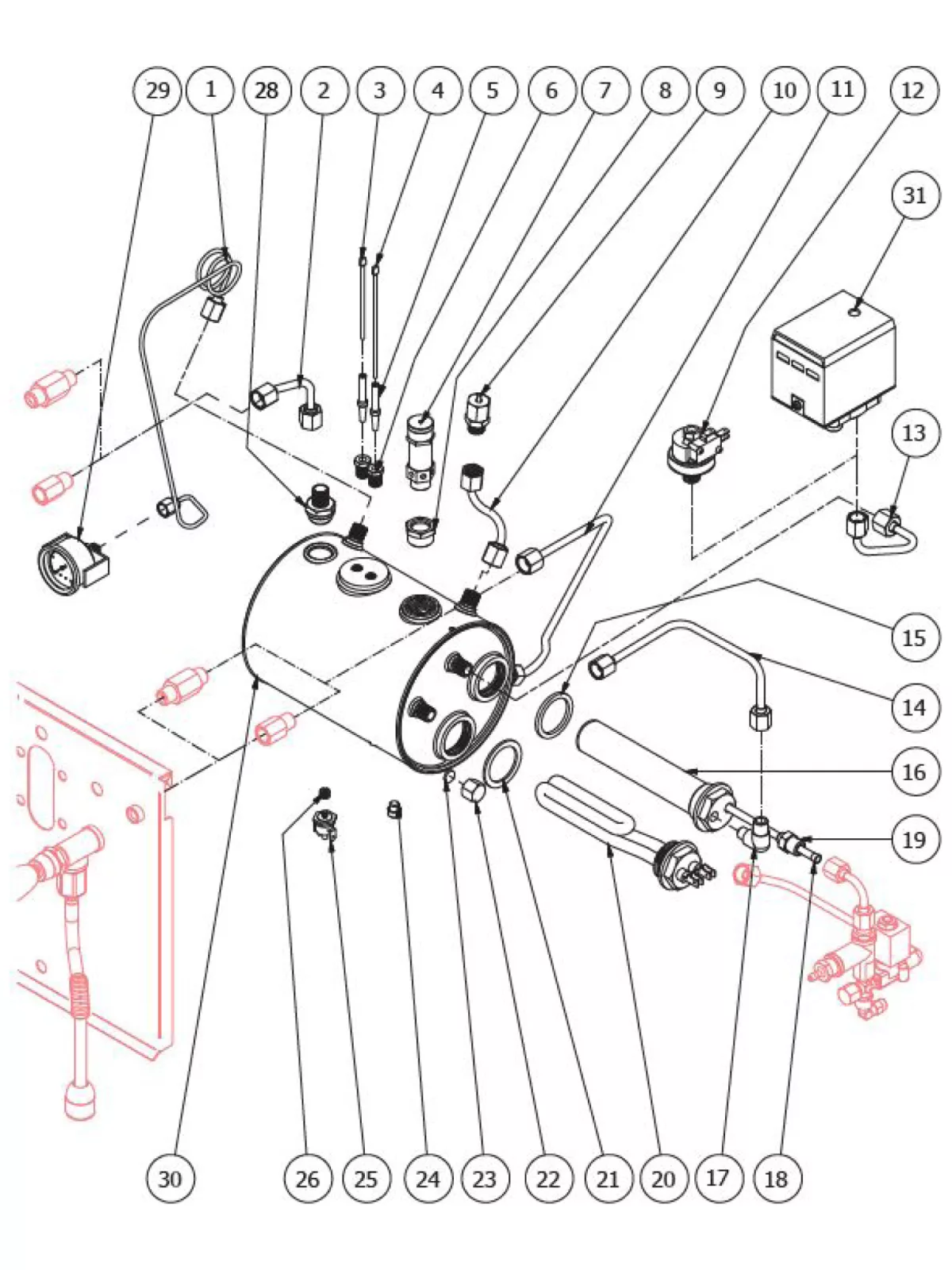 - Manual Drain Valve: Starting with serial number NP01815321 and higher (until further notice from Bezzera and it may change again without notice), the minimum water level probe in the boiler has been removed. A manual drain valve has been added.