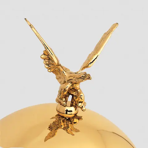 The Elektra Belle Epoque 3 Group Commercial Espresso Machine boasts a striking dome-topped design with gold and copper finishes, wooden handles, gauges, cup trays, multiple spouts, and a decorative eagle for classic vintage flair. © 2025 1st-line.com