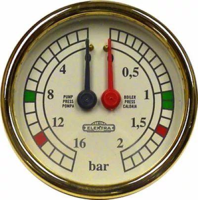 Elektra 00985026 Dual Pressure Gauge- Yellow/Gold