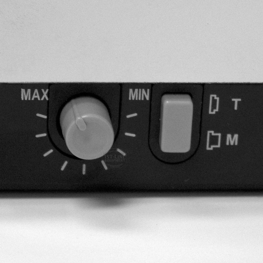 Located on the right of the grinder. The large switch turns the grinder on. The button on the lower right switches the grinder from semi-automatic (pushed out) to a timer (pushed in) in timer mode. The knob on the lower left adjusts the amount of time the grinder will run. Turn clockwise to increase time and counterclockwise to decrease time. Push the button in front of the grinder underneath the coffee chute to start grinding!