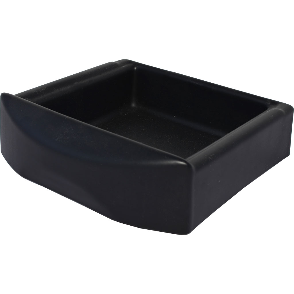 The La Nuova Era NE447N Plastic Drip Tray is a black, rectangular tray with curved edges and a raised front lip, ideal for holding or organizing small items. © 2025 1st-line.com