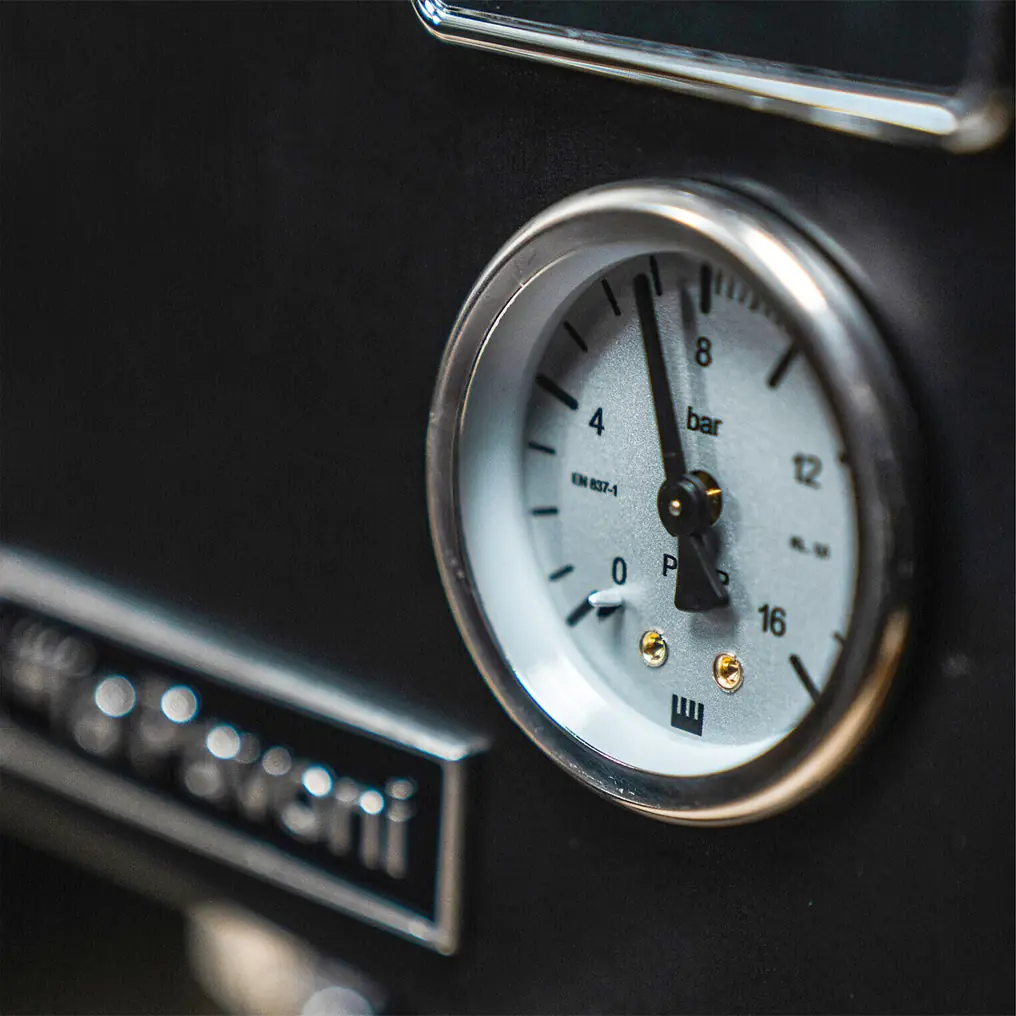 The PID display with built-in shot timer allows precise temperature control and consistent extraction by maintaining stable brew temperatures. An integrated pressure gauge provides real-time visual feedback during brewing, helping users monitor pump pressure and fine-tune grind, dose, and extraction quality.