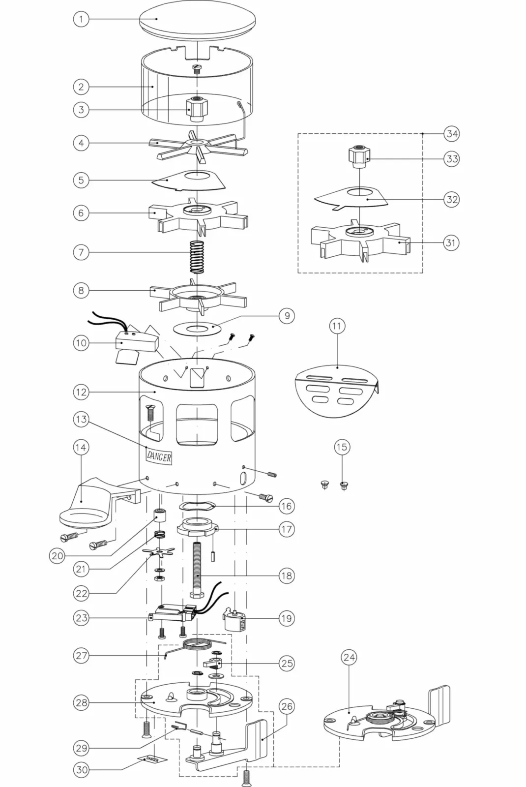 Finger guard – Prevents users from “accidentally” putting their fingers in the grinding burrs. - Stopper: A door near the bottom of the hopper slides inward to close the opening This allows you to remove the hopper with beans inside so you can easily change the beans. There will be some beans already passed in the burrs which will have to be ground out first before removing the hopper.