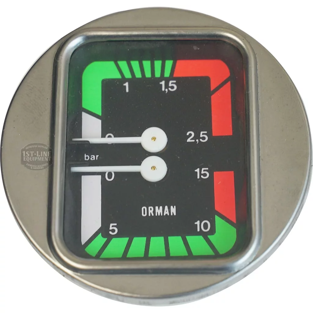 This P..391 double scale gauge is suitable for Pavoni Bar, Bart, and Pub espresso machine models.