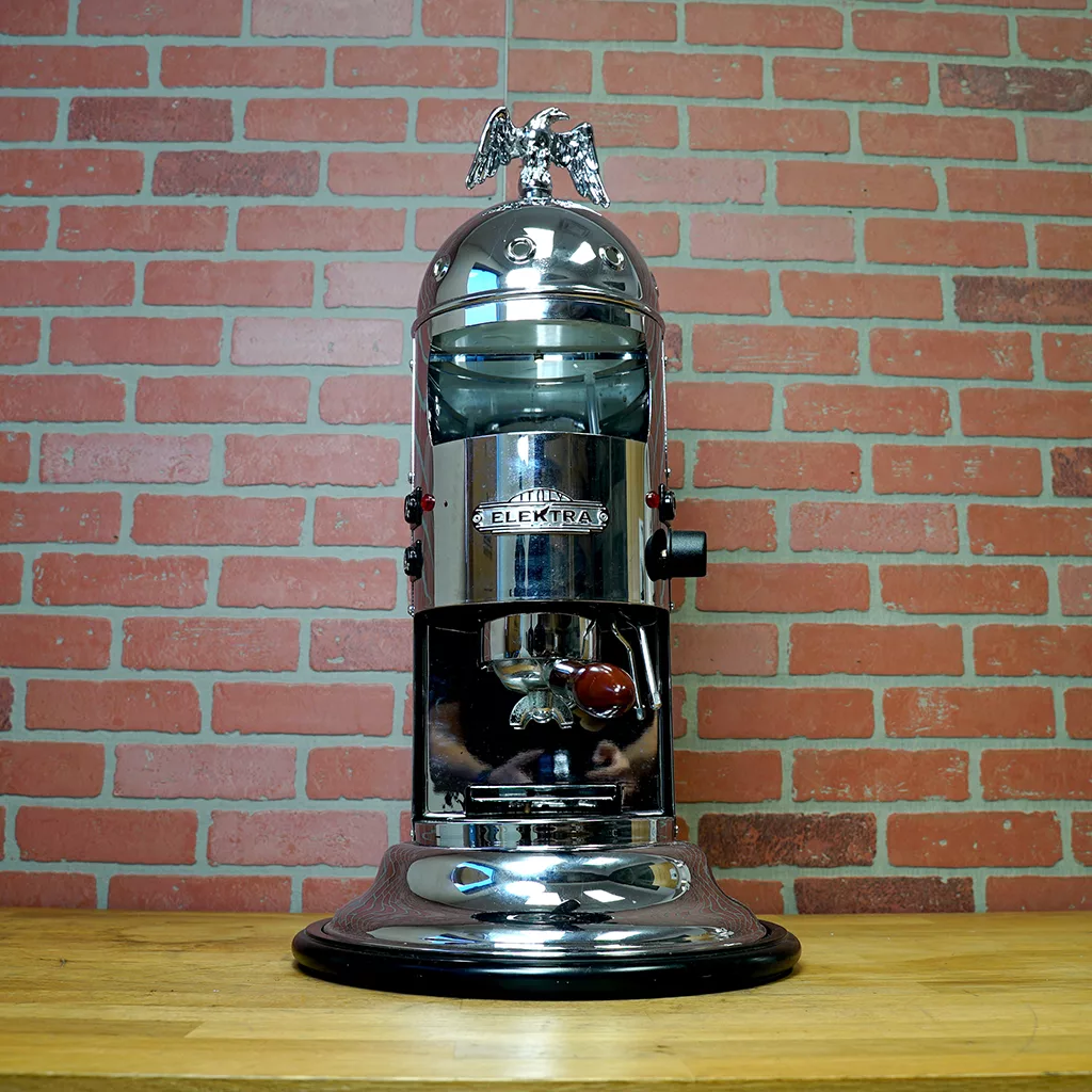 - Elektra espresso machines feature a high polish finish, with materials ranging from chrome to copper to brass. Most parts are clear-coated. Special attention is required when cleaning. Hash products can eat away at the clear coat or even etch the chromed finish. Descaling solution can eat clean through plating.