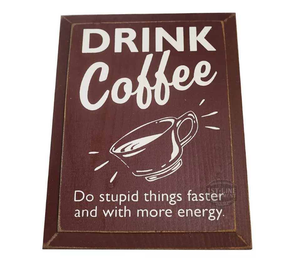 DISCONTINUED “Drink Coffee – Do stupid things faster…” Sign by 1st-line Equipment