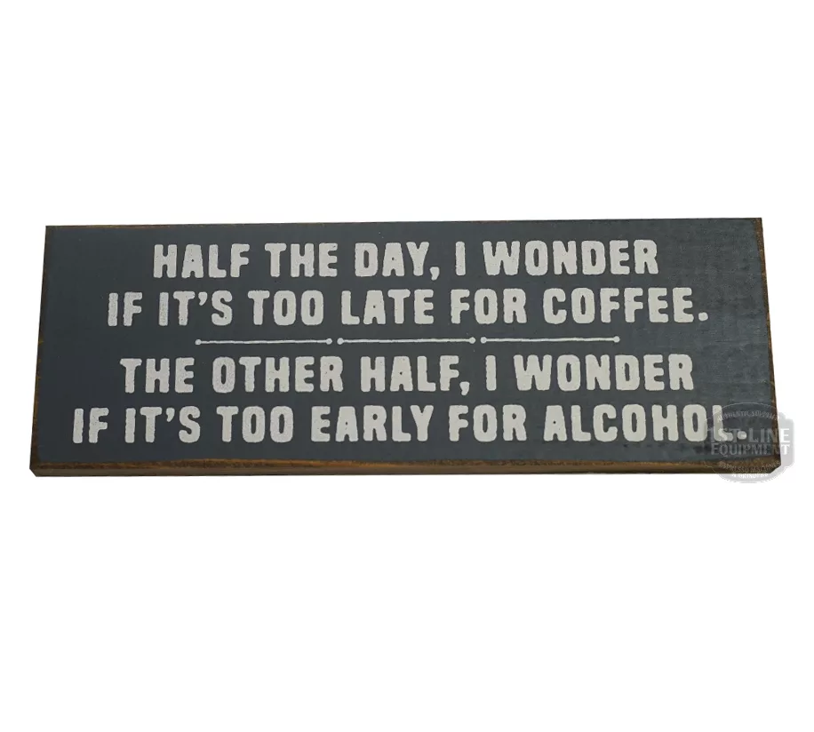 “Half the day, I wonder if it’s too late for coffee. The other….” Sign