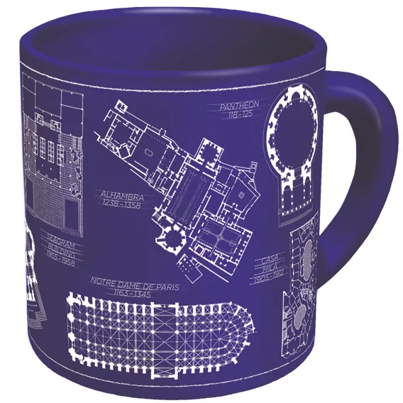 - On the bottom of the mug shows the designers of each building.