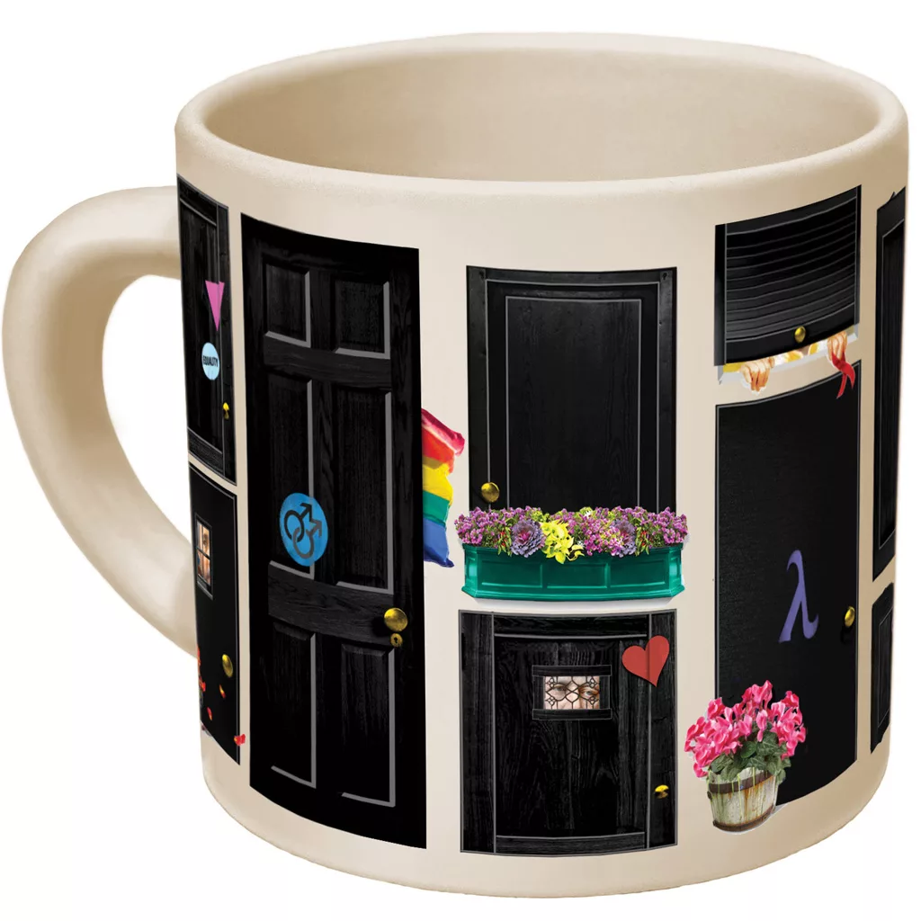 What do Walt Whitman, Oscar Wilde, and Andy Warhol have in common? If you’re thinking, They were all gay” you’re only half right. They’re also all included in this amazing Great Gays Out of the Closet Coffee Mug. When the mug is empty, it shows fourteen closet doors. But when you pour in a hot beverage, 14 of the world’s most famous gays proudly emerge. Michelangelo, Michel Foucault, Freddie Mercury – Talk about star bucks! And there’s also Willa Cather, Tchaikovsky, Sappho, Alan Turning, Audre Lorde, Michel Foucault, Yukio Mishima, and Gertrude Stein. The Great Gays Mug might be the most outrageous and proud cup of coffee ever! ~14 fl oz. mug. Disappearing mugs are not dishwasher safe. (Note: a fluid ounce measurement is different than a standard ounce measurement). “