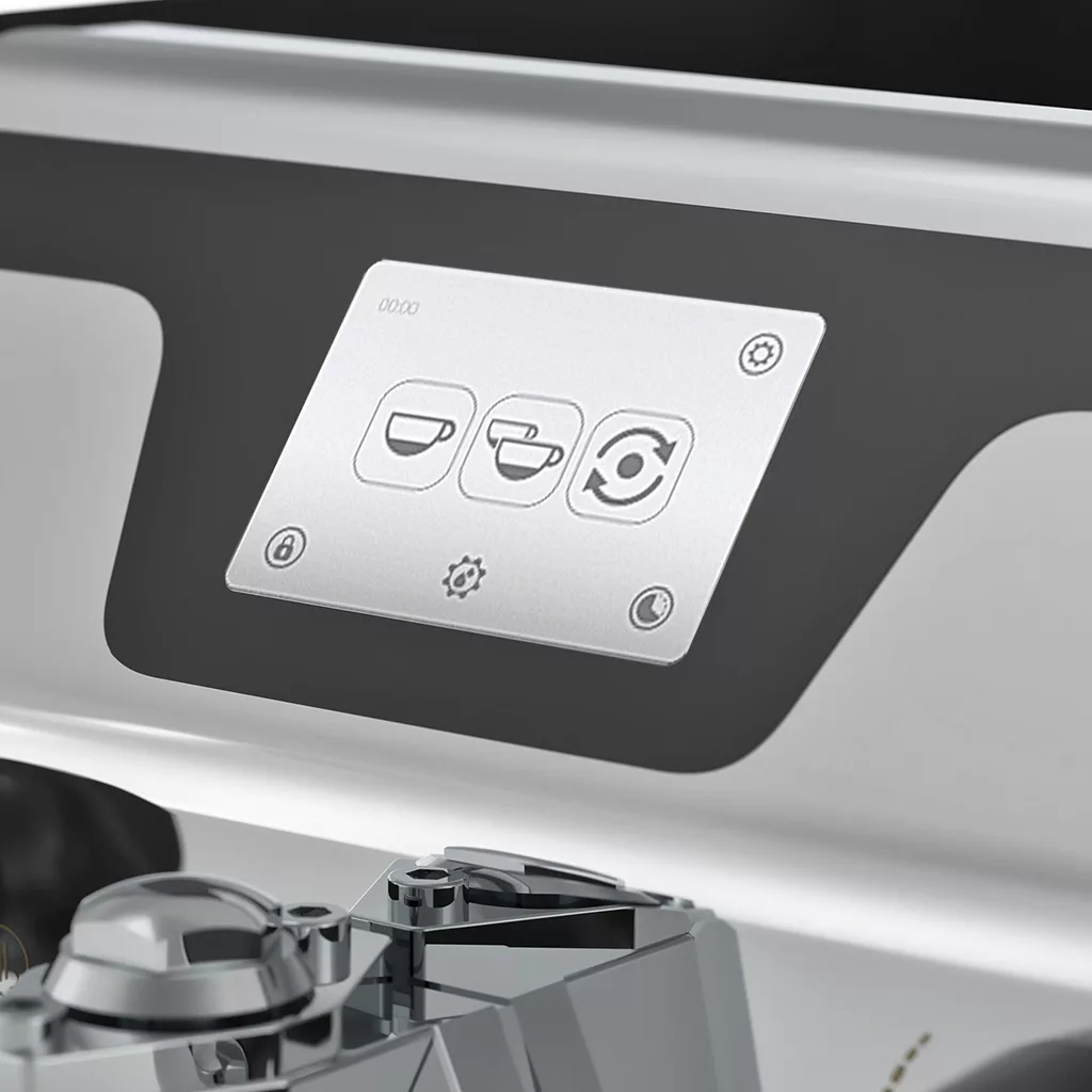 Dual boiler machine with customizable side color panels and a touch screen panel with the capability of “Dual Profiling.” What is “Dual Profiling?” This is the capability to program pump pressure shot profiling as well as a flow control profile device on top of the grouphead to fine-tune on the fly!