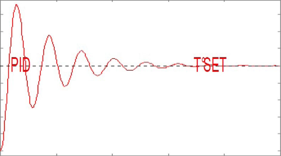 - If, in the heating or maintenance phase, the temperature has an excessive swing and it’s often more than the T°SET but then weakens in time, the derivative constant Kd needs to be diminished.